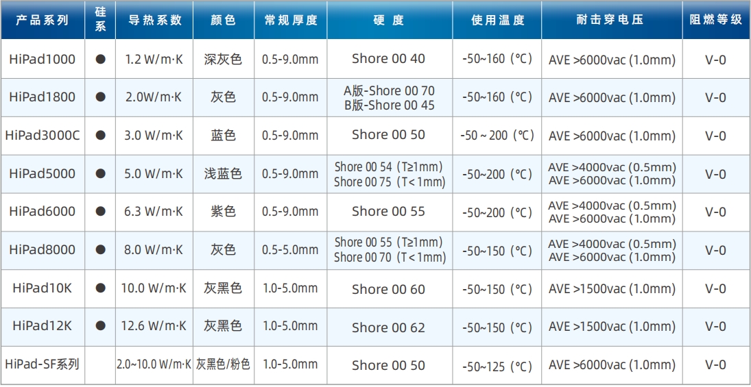 有機(jī)硅導(dǎo)熱墊片,導(dǎo)熱率從1.2W/m·k -12W/m·k,硬度范圍Shore 00 15 - Shore A 80,厚度范圍0.13 - 13.0mm 可增加表面處理、玻纖、 背膠 、絕緣層 高導(dǎo)熱率墊片,滿足不同客戶的需求。汽車行業(yè)成熟應(yīng)用,汽車電機(jī)驅(qū)動(dòng)控制器、逆變器、PTC專用導(dǎo)熱絕緣片。產(chǎn)品類型 片材 卷材 定制模切